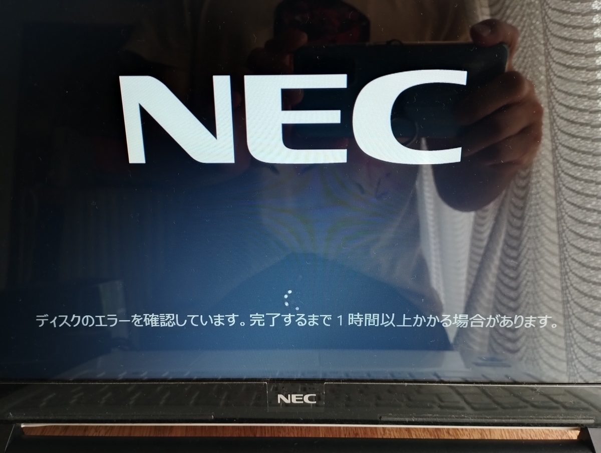 ディスクのエラーを確認しています。完了するまで1時間以上かかる場合があります。