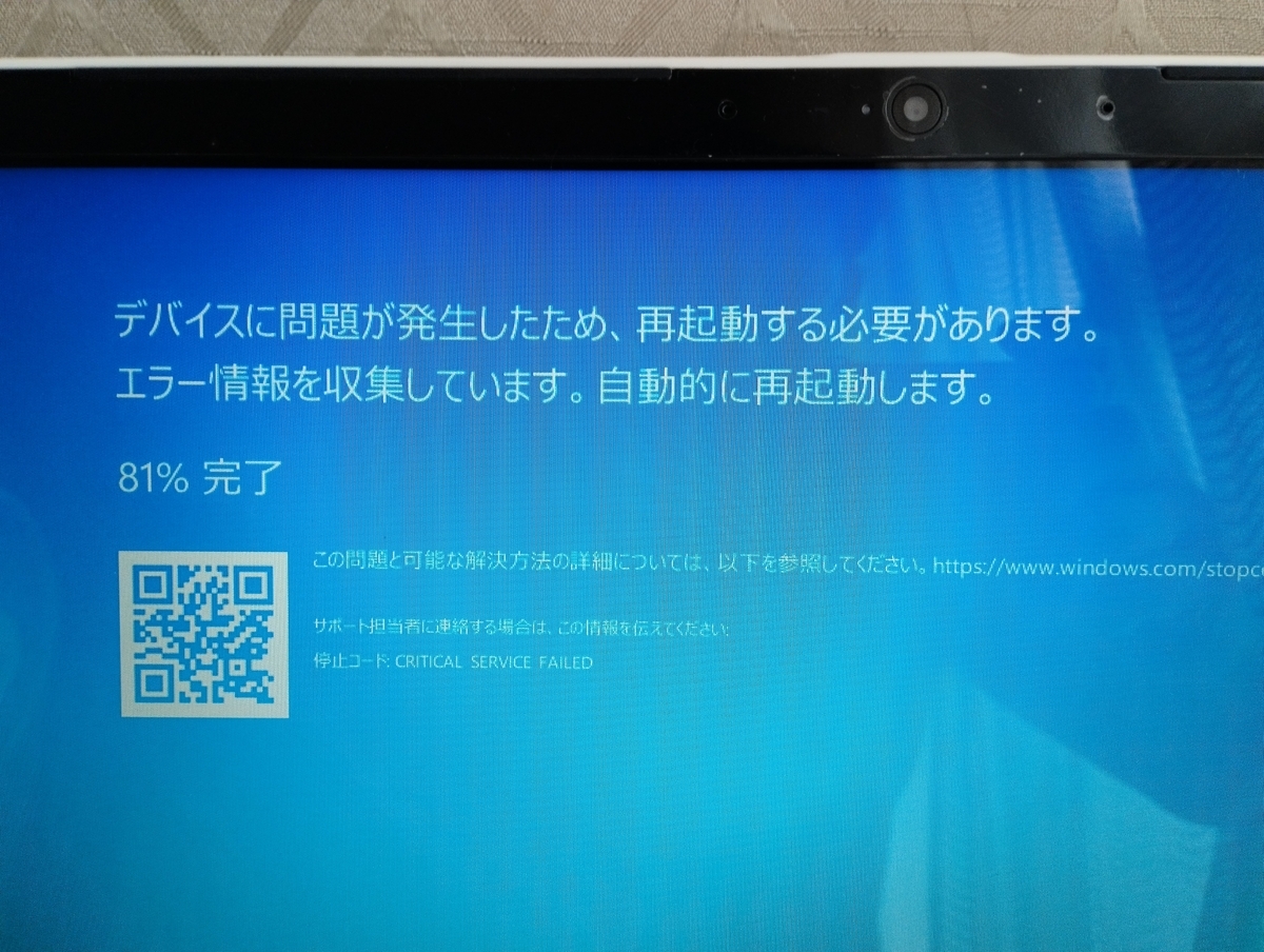 デバイスに問題が発生したため、再起動する必要があります。エラー情報を収集しています。自動的に再起動します。停止コード:CRITICAL SERVICE FAILED