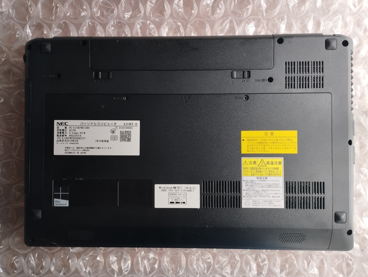 PC-VJ19EFWZ1SRHの分解・SSD交換は簡単で、裏側のカバーを外せばすぐに内部に到達します。その前にバッテリを外しておくのをお忘れなく。