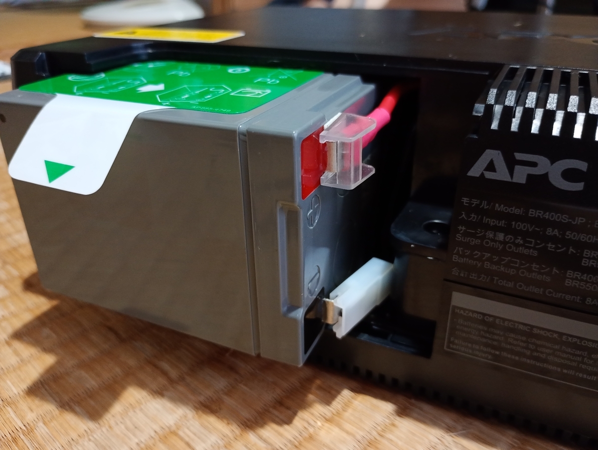 APC BR550S-JPの初期設定は特に難しい点はないものの、赤のケーブルが抜かれた状態で届くので接続する必要があります。